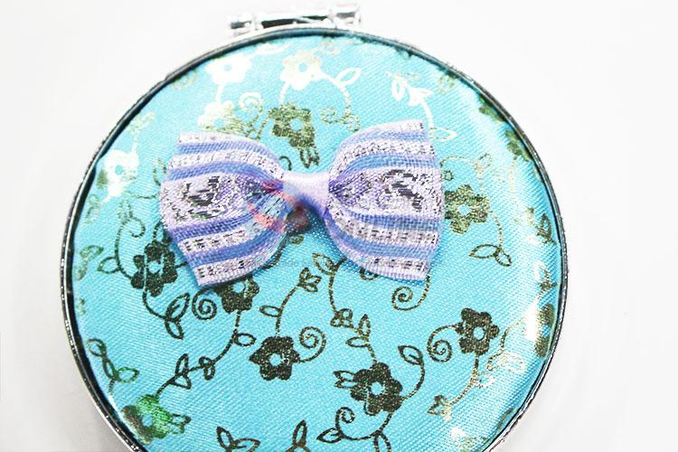 Wholesale Blue Mini Round Cosmetic Mirror with Bowknot