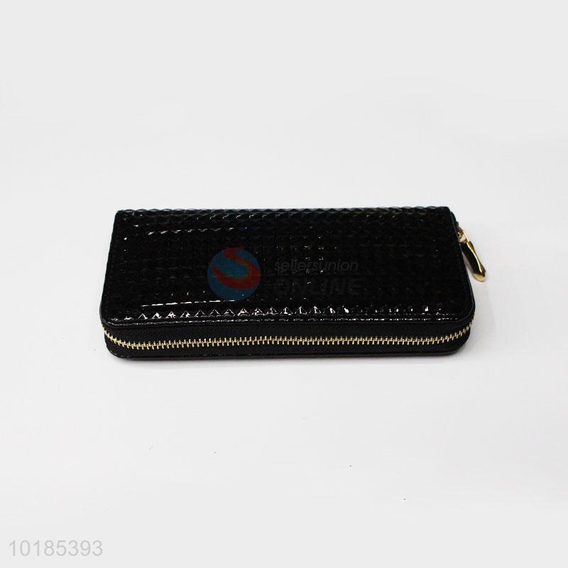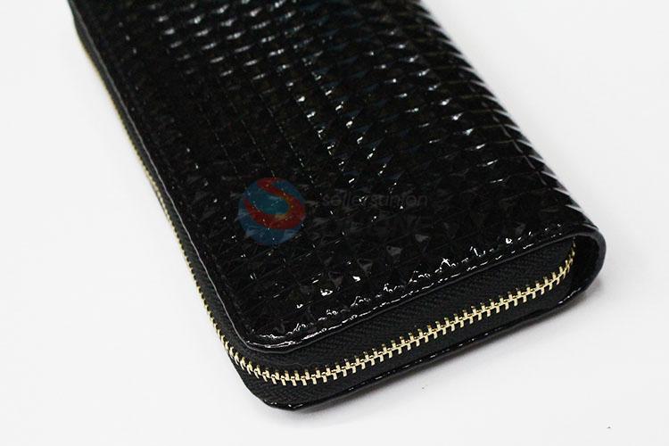 Factory Hot Sell Black Rectangular PU Purse/Wallet for Ladies