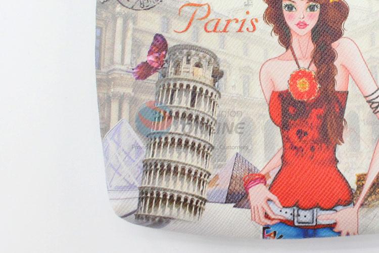 Women Fashion Girl and Buildings Printed Short Wallets Small Wallet Roomy Purse