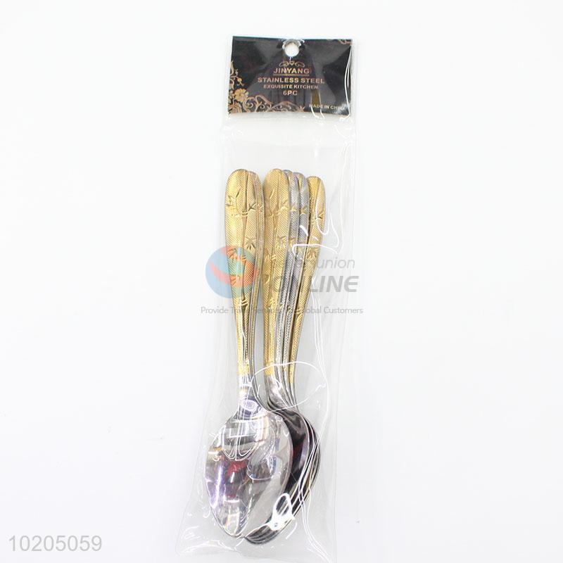 Promotional cheap bamboo pattern stainless iron spoons