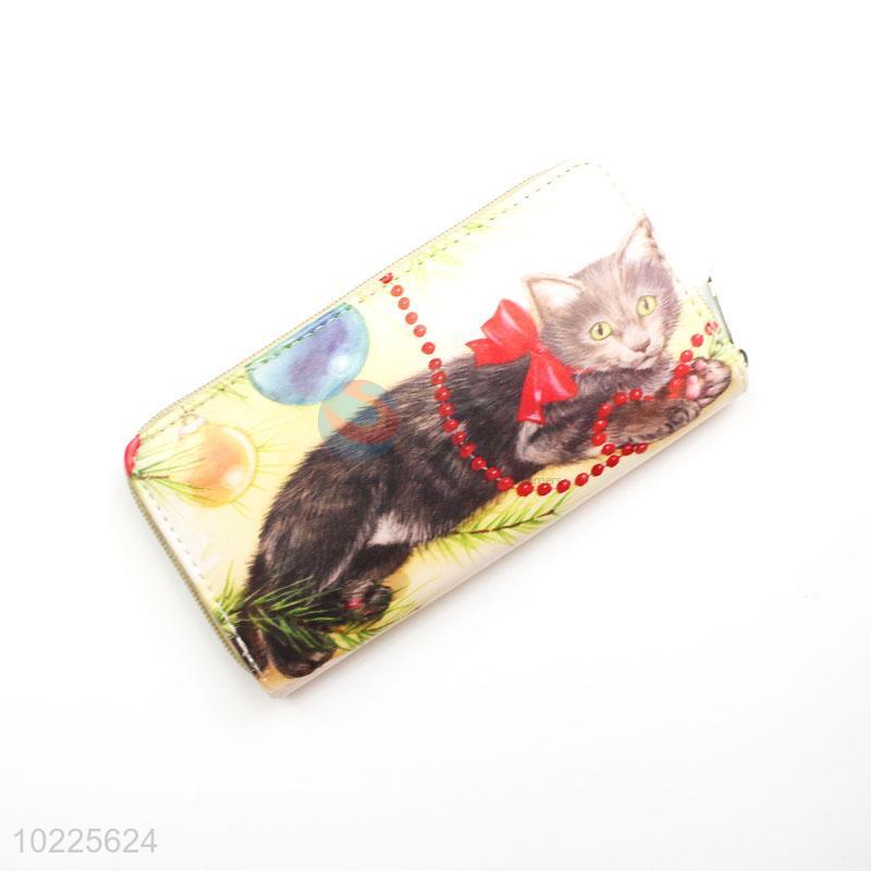 Black Cat Printed PVC Purse&Wallet with Copper Zipper for Sale