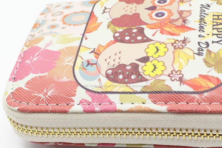 Promotional Lady Purses Long Wallet with Owl Pattern