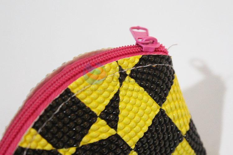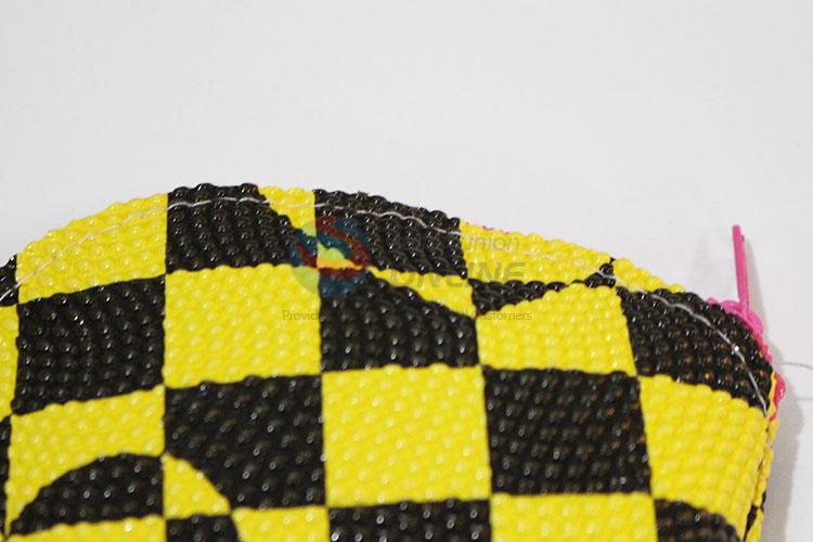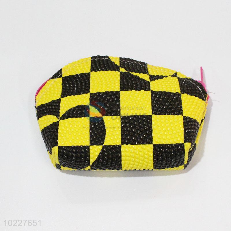 Factory Direct Yellow and Black Check Pattern Coin Bag with Wrist Strap
