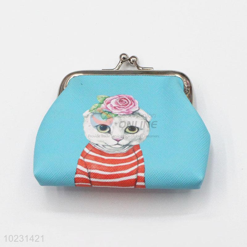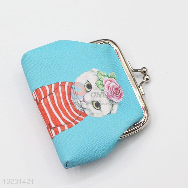 Cat Pattern Sky Blue Coin Bag PVC Portable Purse