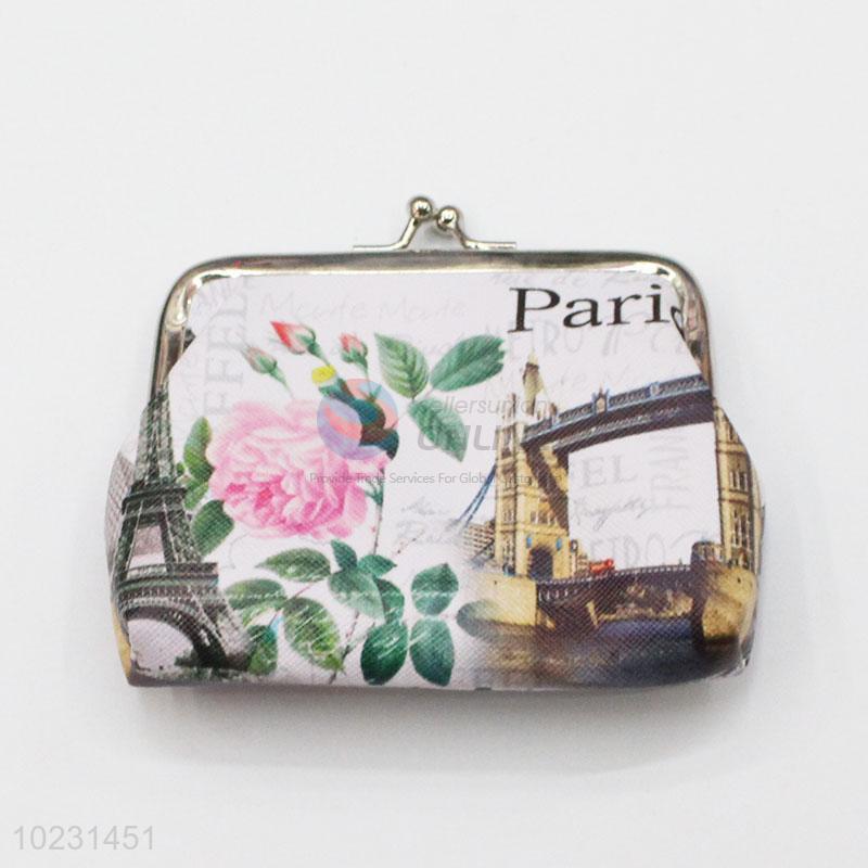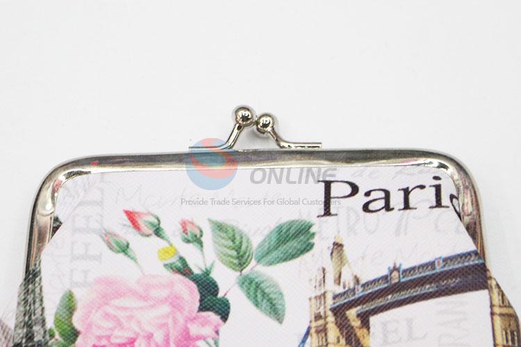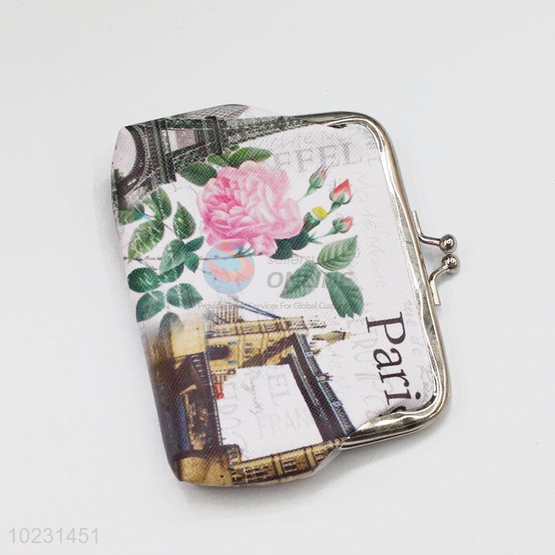 Flower & Building Printed Coin Purse Wallet PVC Pouch Money Bag