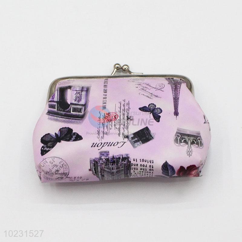 Purple Color Building Pattern PVC Coin Purse