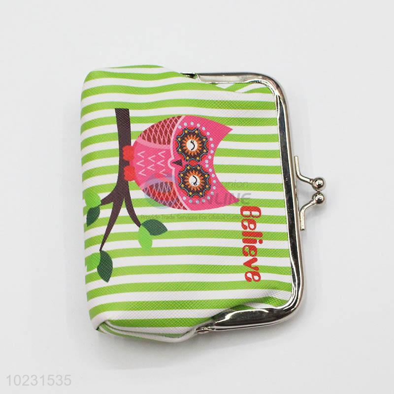 High Quality Green Striped Pattern PVC Coin Purse Wallet