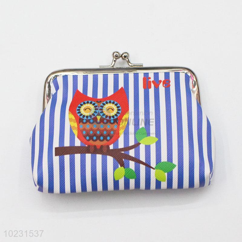 New Lovely Owl Printed Blue Striped Pattern PVC Coin Bag