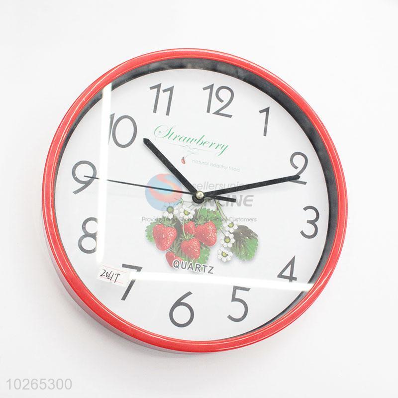 Red Frame Strawberry Pattern Decorative Plastic Wall Clock