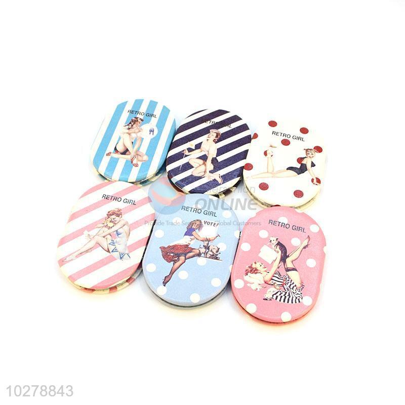 Retro Girl Printed Pocket Cosmetic Mirror for Sale