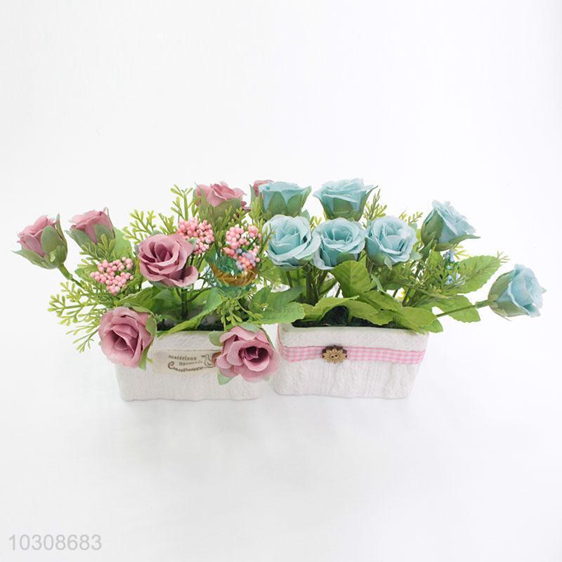 Popular square ceramic simulation rose bonsai