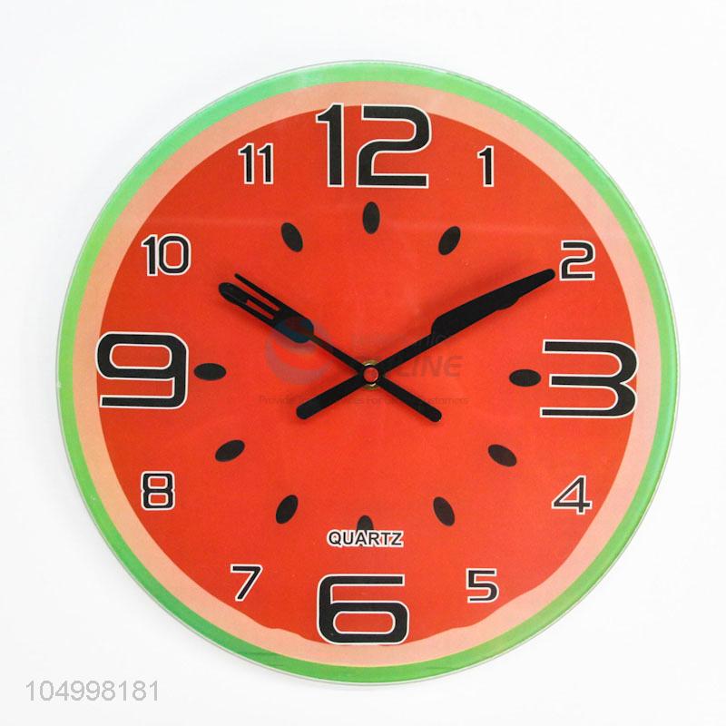 Excellent Quality Cheap Price Round Shaped Fruit Pattern Glass Wall Clocks Design