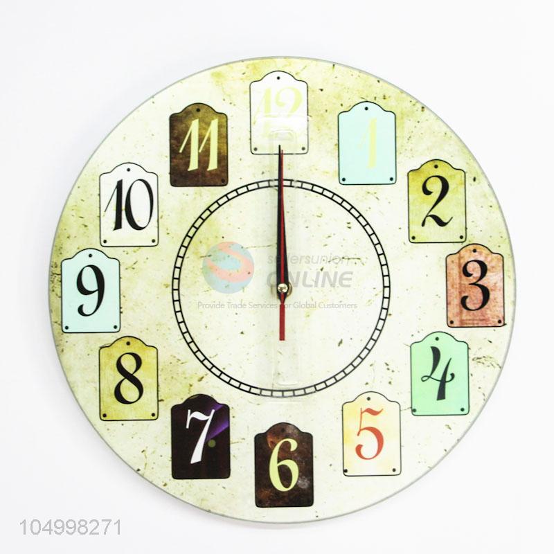 Cute Colorful Numbers Printed Round Shaped Glass Wall Clock