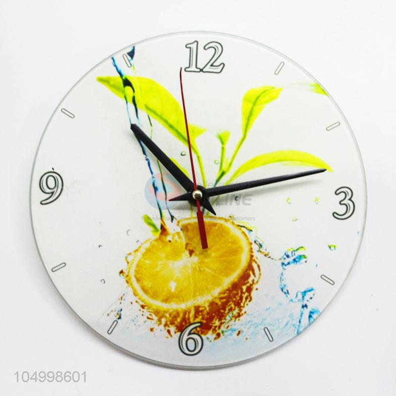 New Arrival Round Shaped Glass Wall Clock With Lemon Pattern
