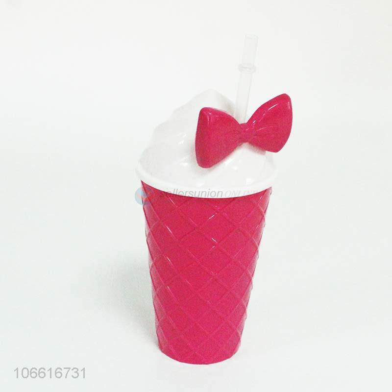 • Cheap and good quality cute bow decorated plastic straw cup