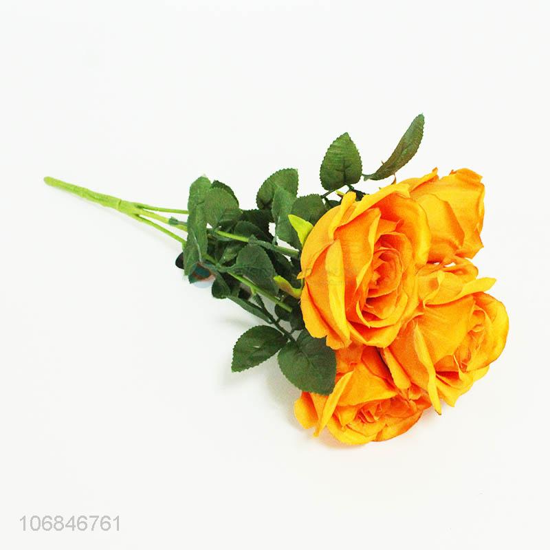 New item decorative sunset red 5 heads simulation rose