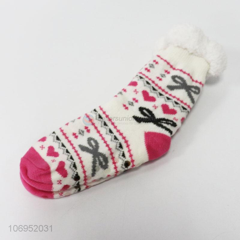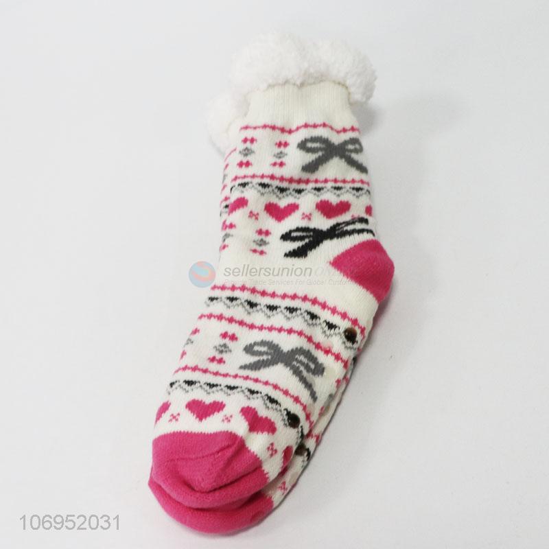 • Wholesale winter jacquard knitted home socks non-slip floor socks for ladies