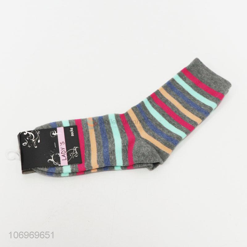 Wholesale cheap colorful striped ladies winter warm crew sock