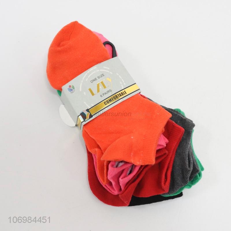 Factory price 6 pairs colorful women boat socks ankle socks