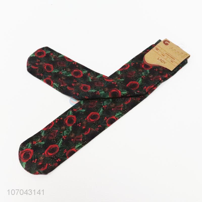 New products rose pattern 3D digital printing women tube socks