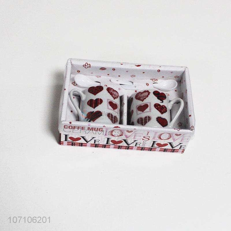 China supplier Valentine gifts ceramic couple cup with spoon