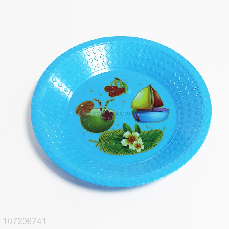 Good quality custom logo printed round plastic dinner plate fruit plate