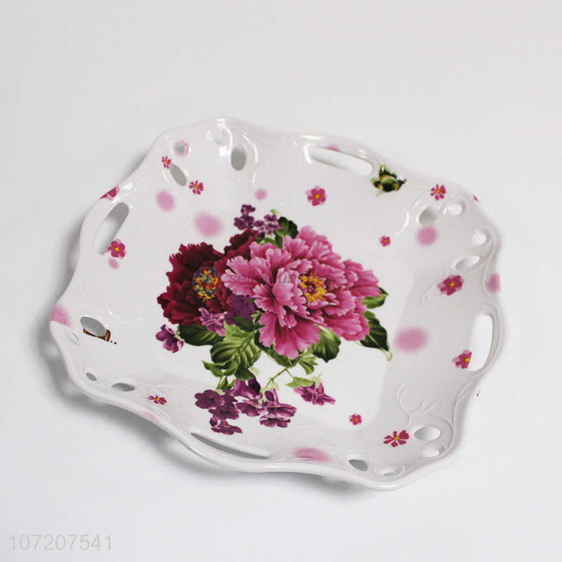 Good quality flower printed hollowed-out melamine fruit plate for decoration