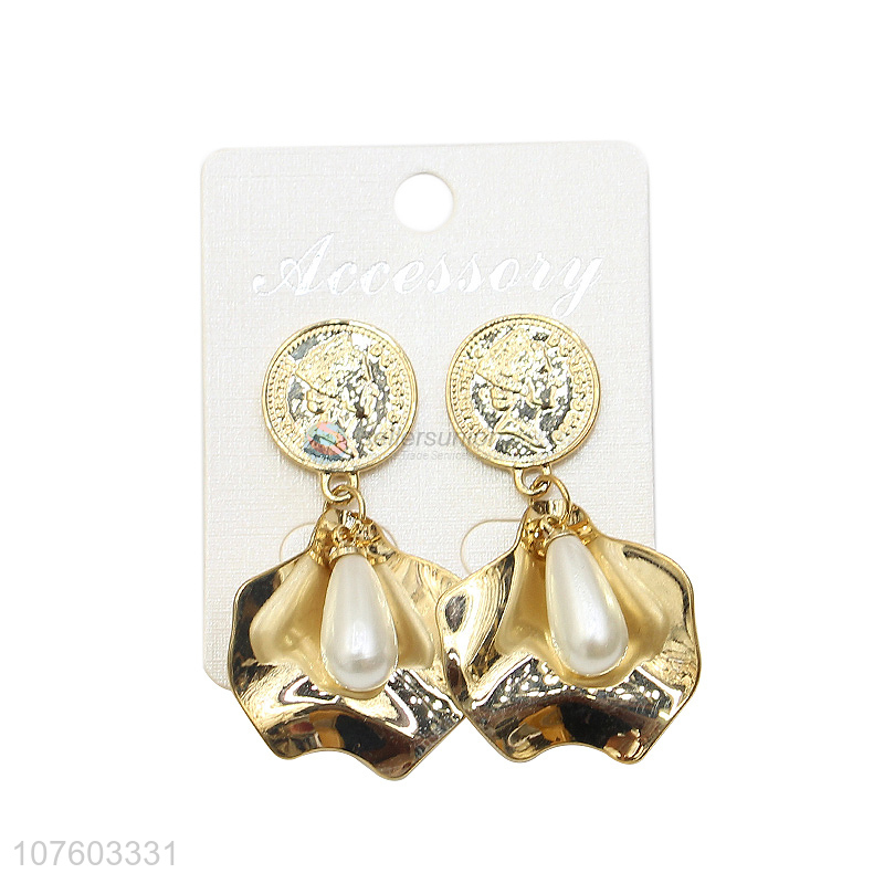 Low price creative coin alloy earrings pearl alloy stud earrings