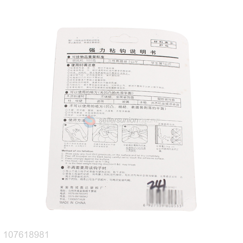Home kitchen bathroom wall plastic hook self adhesive hook