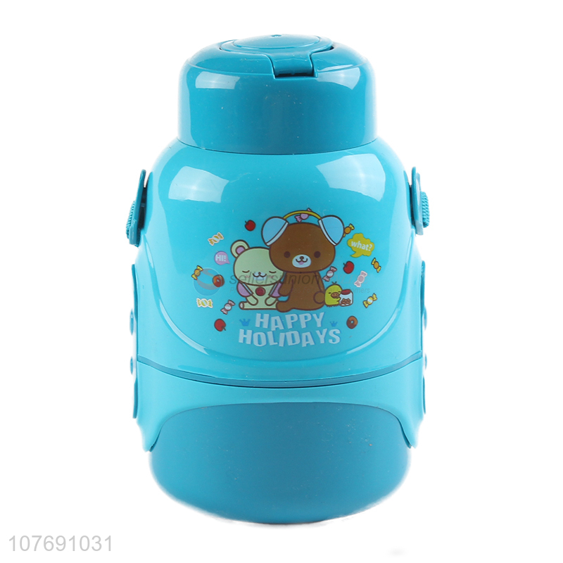 Wholesale kawaii kids plastic water bottle with straw and strap