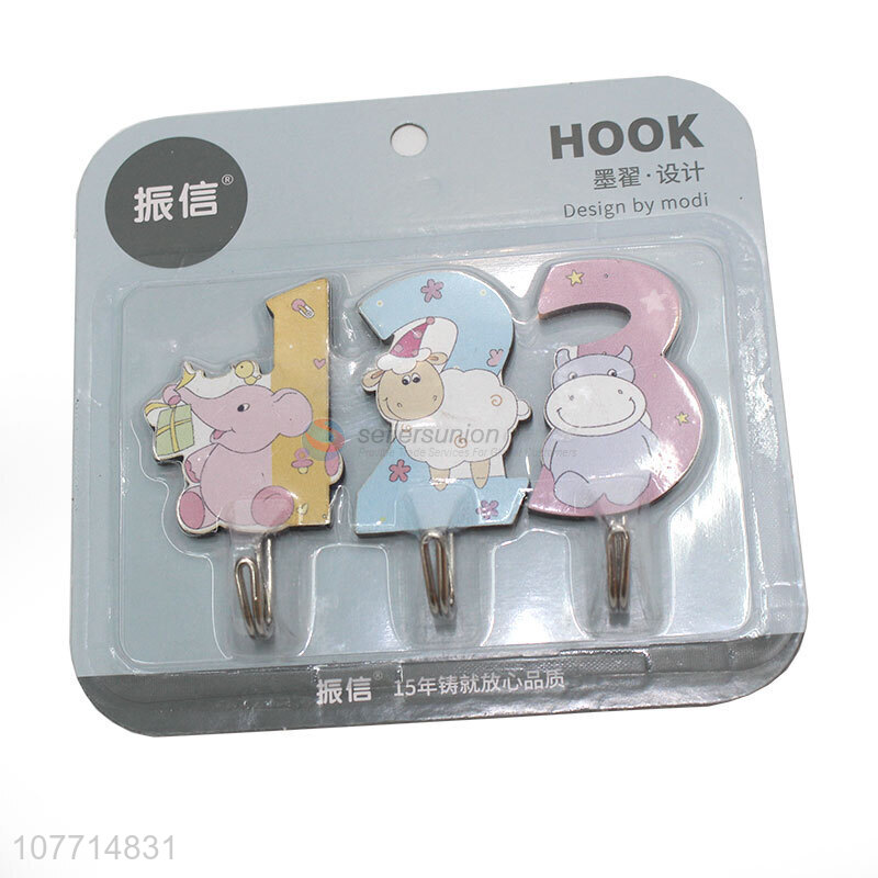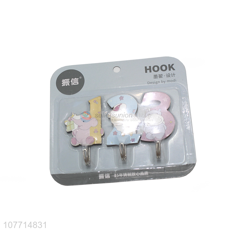Hot Selling 3 Pieces Cartoon Numbers Sticky Hook Cute Wall Hooks