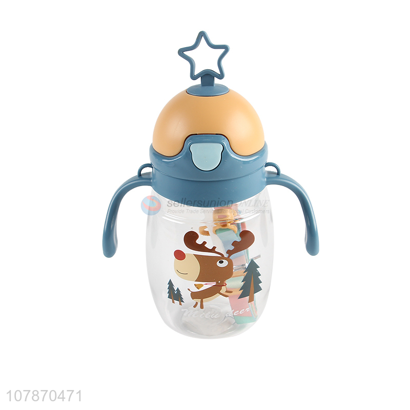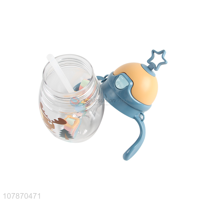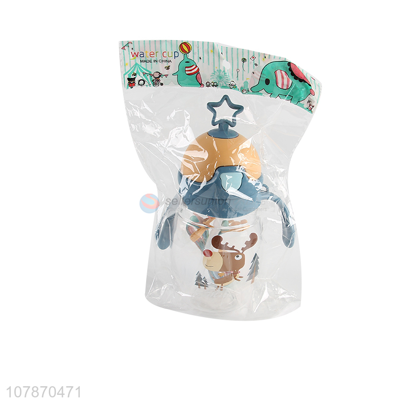 Online wholesale cartoon baby kids straw water bottle with straw and strap