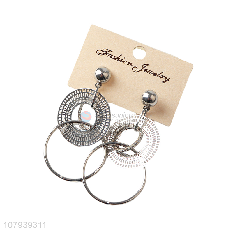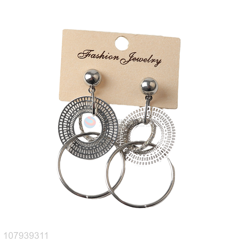 Hot selling silver metal large circle pendant women stud earrings