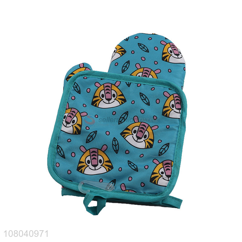 Hot sale blue cartoon printing kitchen glove potholder set
