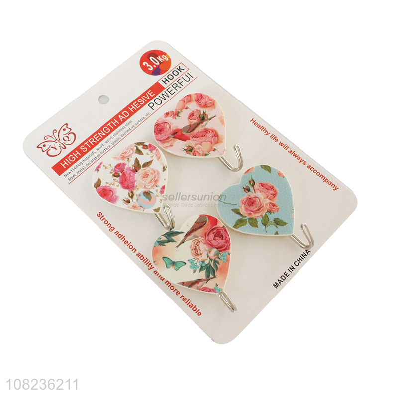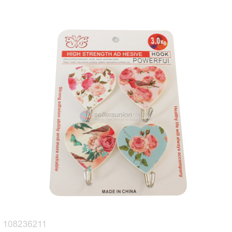 Popular Heart Shape Self-Adhesive Hooks 4 Pieces Sticky Hooks
